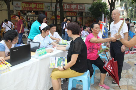 虽然是炎炎夏日,但仍然挡不住小区市民热情参与圣丹福医院的活动。广州圣丹福医院的医生为雅居乐的广大市民免费量血压、测心率,给大家免费进行地贫筛查,发送免费中医理疗体验券、优生优育检查公益卡,为社区市民送去了健康,提供了生育前的必要检查。