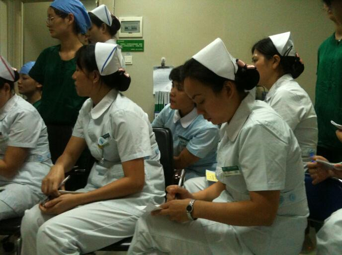 10月14日下午14:00,广州圣丹福医院手术室护理组进行10月份护理查房,查房的内容是《静脉留置针的应用技巧》,由手术室护士长吴静担任主讲,其他讲解者有帅莹、刘育卿、曾利兰、汪甜等人。一共有6个科、19人参加了此次查房。