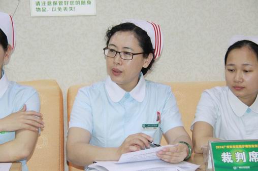 竞赛总裁判广州圣丹福医院护理部主任邱宁在为选手点评